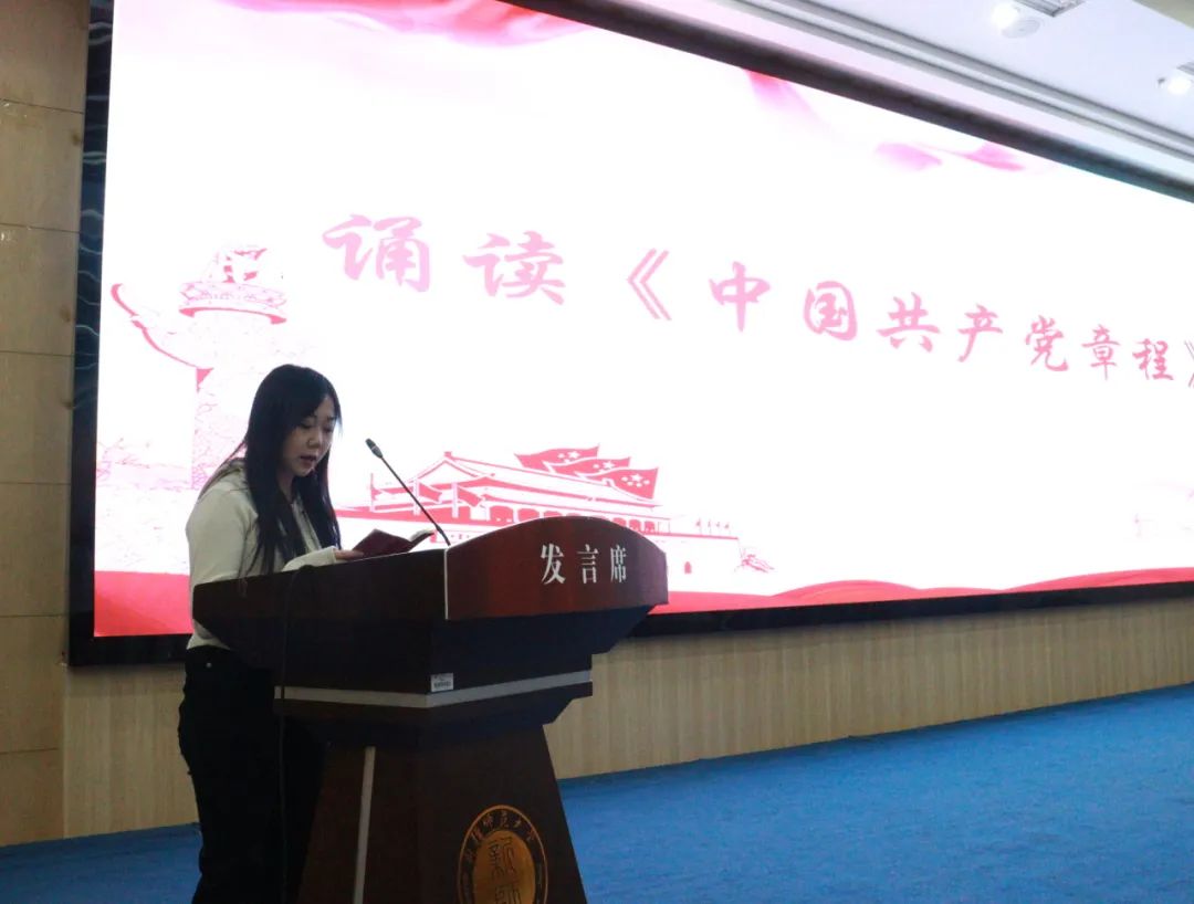 活动开始,由美术学院研究生第一党支部书记牟吟雪带领全体党员落实第一议题制度,学习了习近平总书记关于中华优秀传统文化的重要论述。随后,在美术学院党委书记比拉力江·阿不力孜的带领下,全体党员重温入党誓词,强化党员身份意识,坚定“不忘初心,砥砺前行”的信念。美术学院宣传委员张露诵读了《中国共产党章程》第十一章“党徽党旗”。