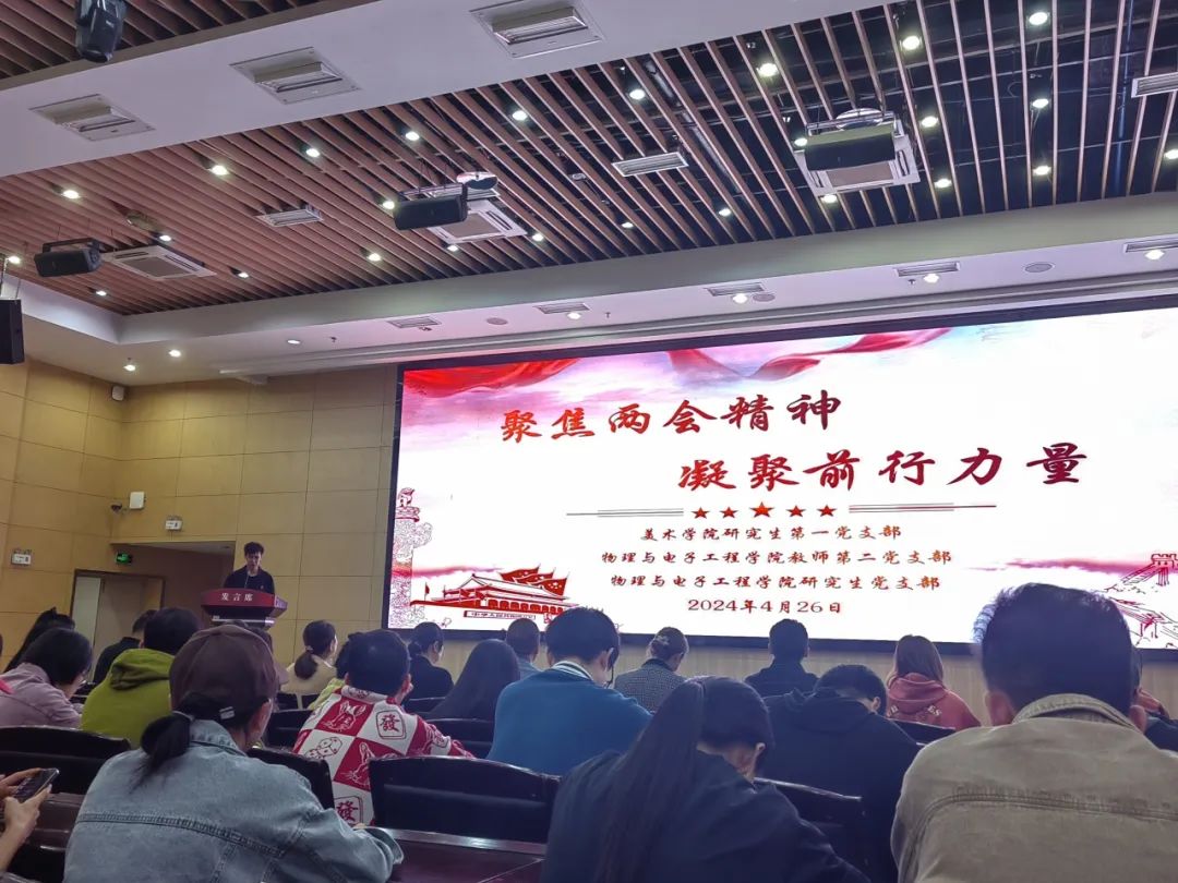 为全面学习贯彻党的二十大精神和全国“两会”精神,深入挖掘中华优秀传统文化价值内涵,激励全体党员从中华优秀传统文化中汲取力量,坚定文化自信,强化使命担当。4月26日,beat365在线唯一官网登录教师第二党支部、研究生党支部联合美术学院研究生第一党支部开展“聚焦两会精神 凝聚前行力量”党日活动,美术学院党委书记比拉力江·阿不力孜、beat365在线唯一官网登录党委书记李莉及三个党支部的师生党员参加活动,活动由beat365在线唯一官网登录研究生党支部组织委员杨天奇主持。