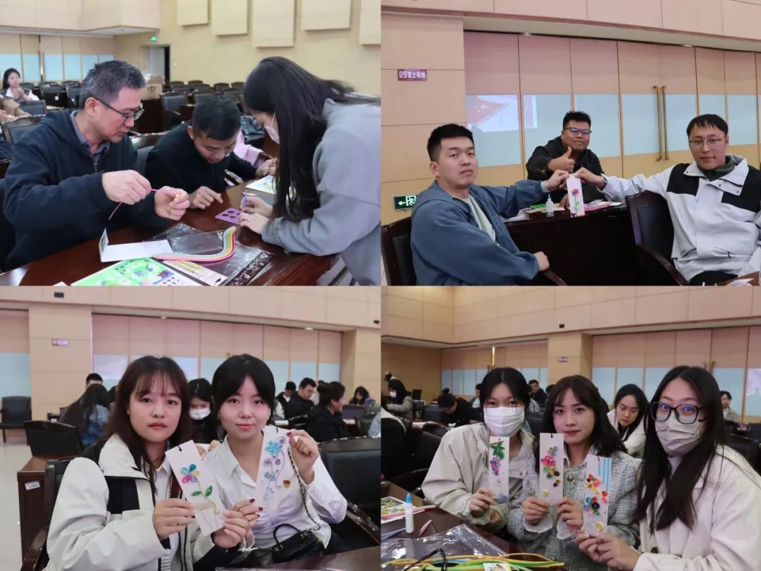纸艺翩跹,衍彩纷呈。在美术学院研究生第一党支部张羽珊的讲解中,大家从追溯衍纸历史起源和独特的制作手法工具等内容中共同体验中国传统文化——衍纸艺术。随后,在美术学院研究生党员的指导下,大家纷纷动手投身到衍纸的实践制作中,经过构图、立意和精心捻搓,一个个富有创意的书签作品在轻松愉悦的气氛中出炉。