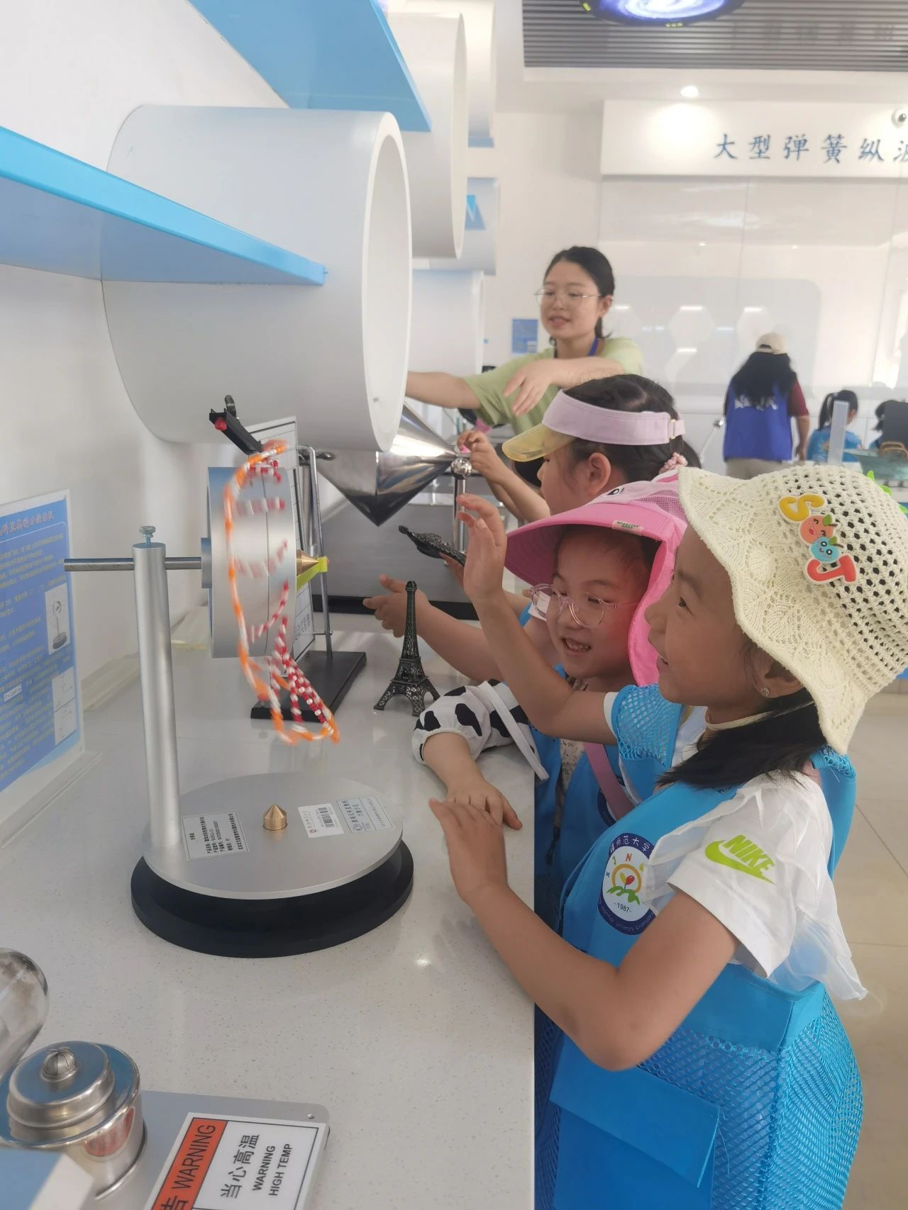 在张老师细致的讲解下认识了光的直线传播原理,小朋友们兴奋地分享着自己的发现;实验室内,师生们共同体验了多种趣味物理实验,通过操作简单有趣的实验、互动游戏的形式近距离感受物理的奇妙和科学魅力,科普志愿者通过提问和奖励的方式让小朋友们的印象更加深刻。