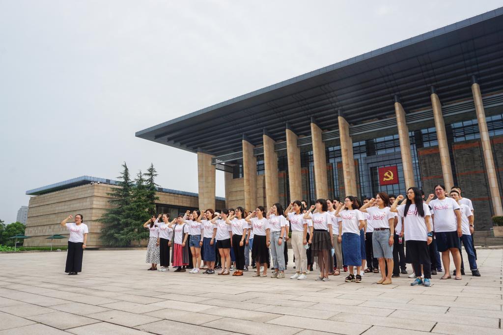 “我志愿加入中国共产党,拥护党的纲领……”参观开始前,支部全体教师党员来到南湖革命纪念馆北广场,面向鲜红的中国共产党党旗宣誓墙,全体党员教师高擎右拳,以昂扬的斗志和饱满的热情进行集体宣誓,铿锵有力的宣誓声响彻广场,展现了每一位党员“不忘初心、牢记使命、永远奋斗”的坚定信念。