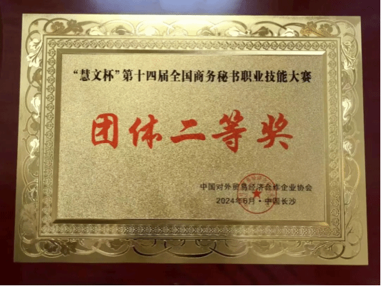近日,由中国对外贸易经济合作企业协会主办的“慧文杯”第十四届全国商务秘书职业技能大赛在湖南司法警官职业学院举行,来自全国68所本专科院校的95支代表队相聚美丽长沙,同台竞技,共展秘书学子风采。经过激烈角逐,我校awc777万象城娱乐官网秘书学专业学子获得本科组团体二等奖。