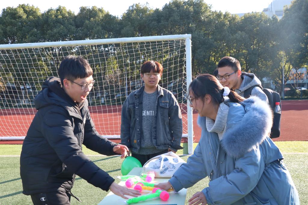 本次活动共有三个游戏项目。在游戏项目开始前,同学们被随机分成九组,每组中有若干名卧底,游戏获胜后可知道本组卧底人数并可交换可疑组员。活动开始后,由负责人分别介绍了各项活动的规则。第一个游戏项目是趣味接力赛,每组成员要分别完成说出与关键词相关的六个词语、蒙眼移动、击打气球和猜拳四个环节,考验了同学们的默契和反应力。接下来的撕名牌游戏,以小组为单位进行比赛。比赛过程中,各小组成员齐心协力,斗志十足,赛况一度十分激烈,引起场边无数人的掌声与欢呼。最后,同学们围绕成一个大圈坐下,击鼓传花,被抽中的同学要说出指定的人的名字,未及时说出或说错的同学则要接受真心话大冒险的惩罚。同学们兴致高涨,在欢笑声中增进了情谊,加深了对彼此的印象。