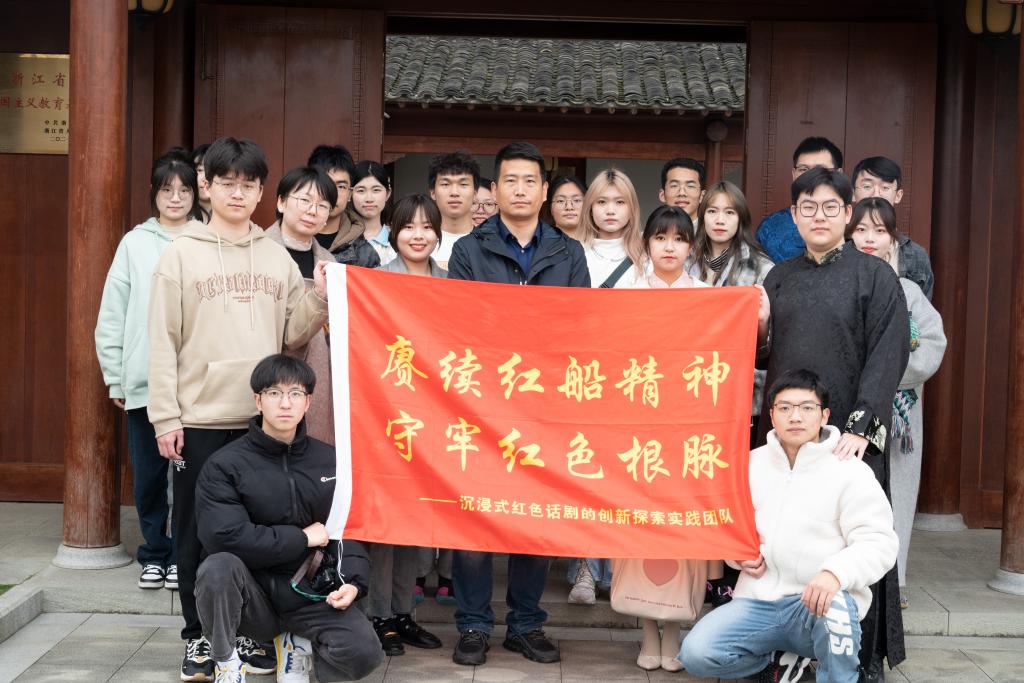 演剧结束后,先锋戏剧社成员来到了嘉兴地方党史陈列馆进行参观,剧社指导老师为戏剧社成员讲解着嘉兴南湖红船的历史,希望同学们走进历史现场感悟,以革命先辈为榜样,学习党史,继承发扬革命精神,坚定理想信念,不忘初心,增强实现中华民族伟大复兴的使命感和责任感。
