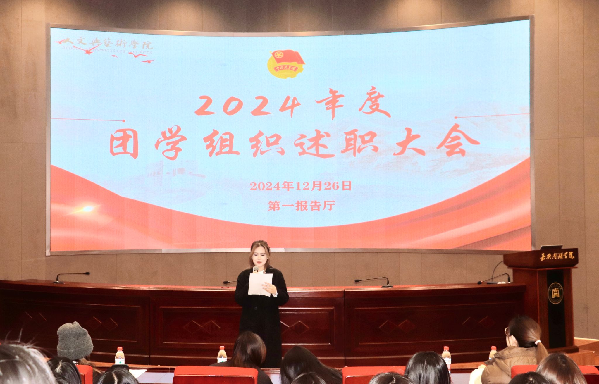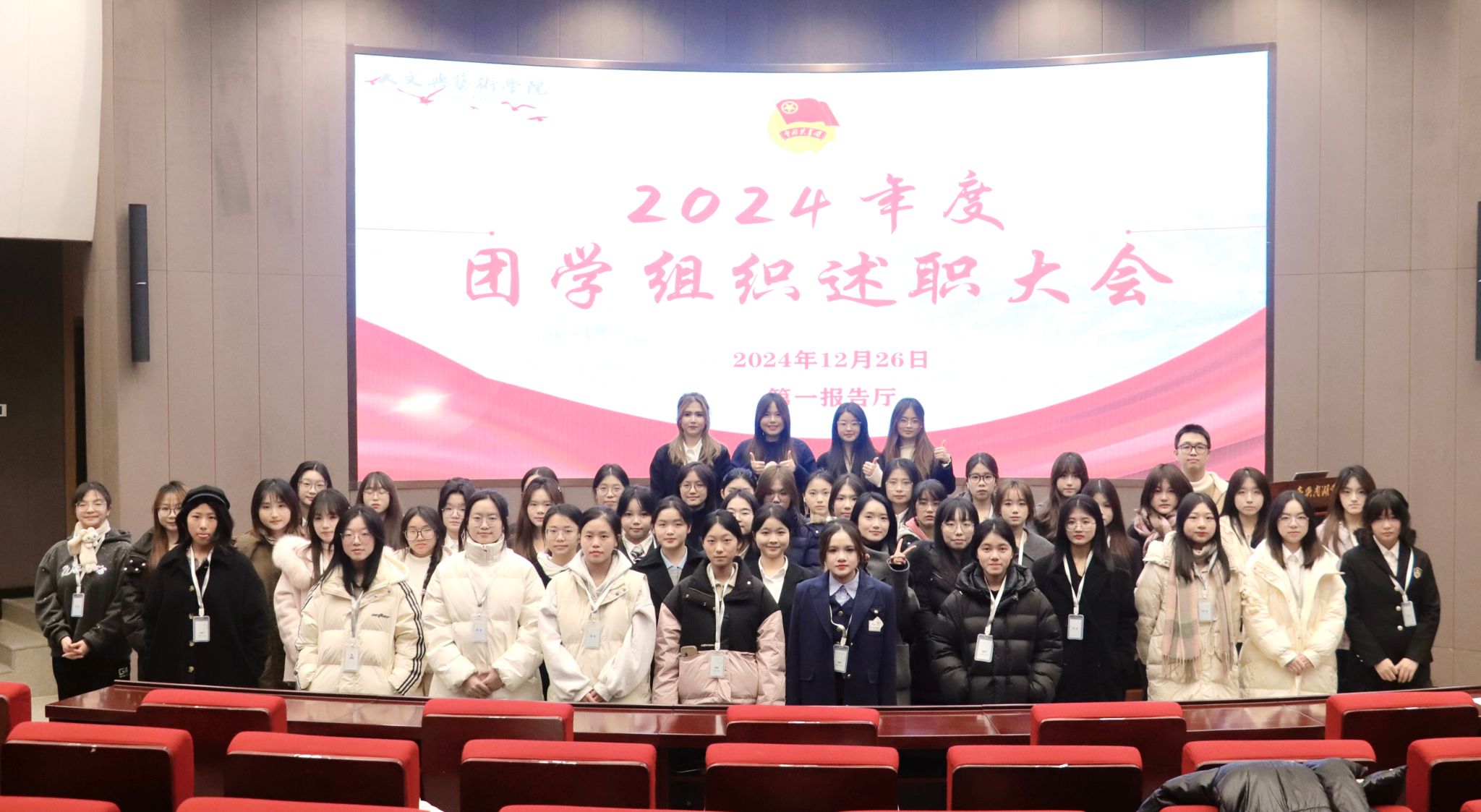 赓续奋进路,筑梦新征程。为进一步夯实团学组织建设,进一步提升团学骨干的履职能力和综合素质,全面总结并反思本学年各项工作,擎画未来工作路径,锚定前行奋进目标,awc777万象城娱乐官网团委于2024年12月26日晚6点30分在校第一报告厅顺利召开“2024年度团学组织述职大会”。 本次会议学院团委书记张雨逸老师出席,哈斯叶提古丽·热西提主持,全体团学组织学生骨干参加会议。