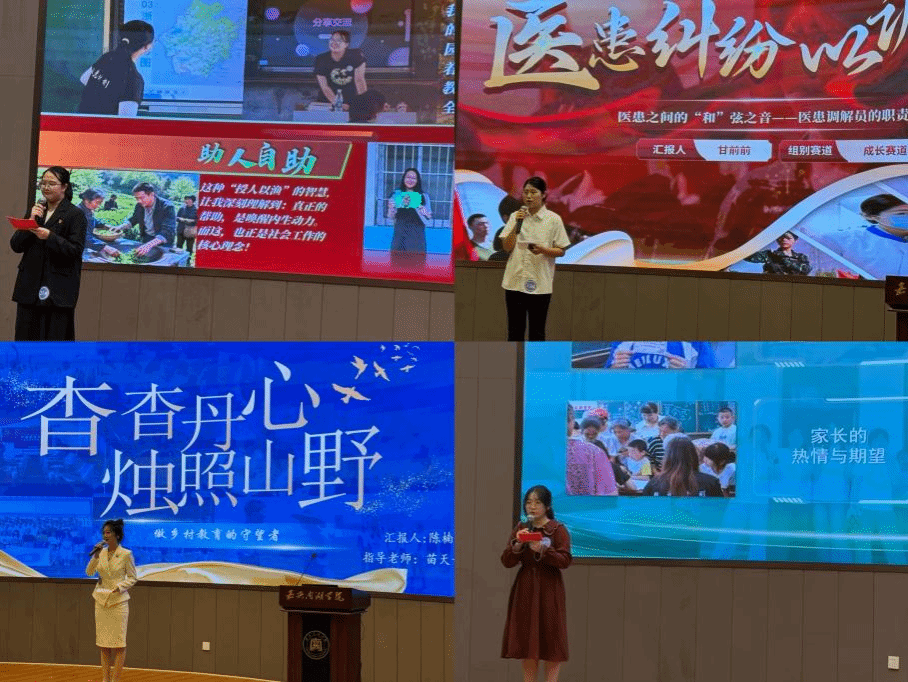 在决赛舞台上,万象城四位同学沉着自信,思路清晰。他们结合自身专业特长、兴趣志向与社会需求,畅谈了各自对未来职业发展的深入思考与系统规划。最终,英语221班王敬华同学凭借极具前瞻性与可行性的规划方案和富有感染力的陈述,荣获大赛一等奖。法学231班甘前前同学和英语222班陈楠同学以其扎实的调研和独特的视角双双获得二等奖。汉语言232班叶柳含同学则以其务实的规划和稳健的台风获得三等奖。