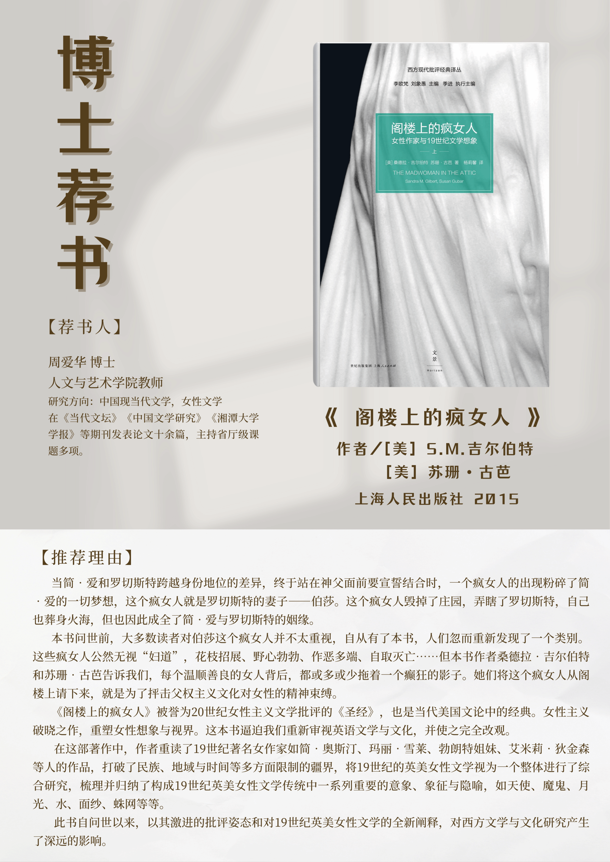 为进一步营造“书香人文”氛围,拓宽师生沟通分享渠道,现在世界读书日来临之际推出“博士读书会”活动,提供博士推荐书单(排序不分先后)供广大师生阅读。
