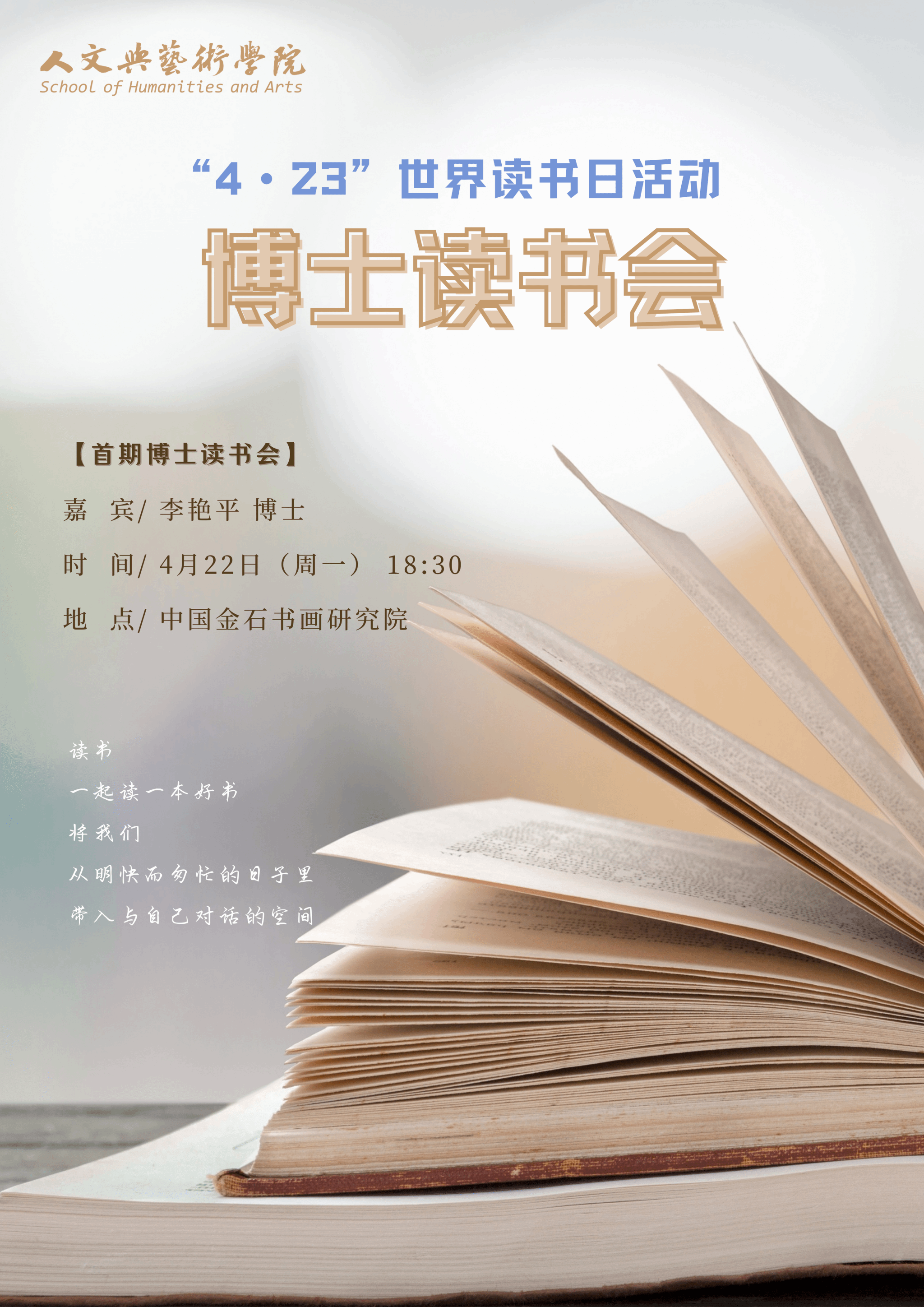 4月22日举行首期博士读书会,由李艳平博士分享《漫长的余生》,欢迎广大师生参与!