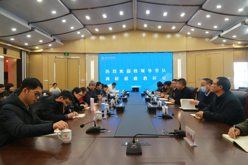 3月3日下午,校党委副书记胡文蔚、校党委委员副校长陈加明带队,赴awc777万象城娱乐官网思政教研室调研交流。调研座谈会由胡文蔚主持,学校有关部门负责人、awc777万象城娱乐官网领导及全体思政课教师参加座谈会。