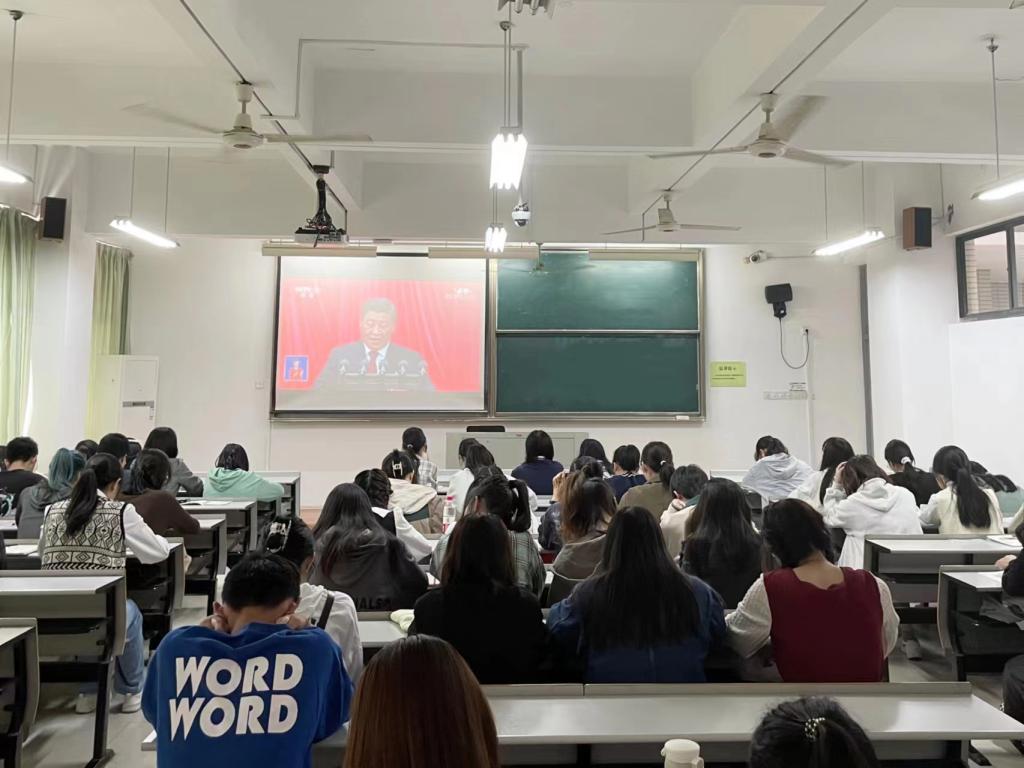 2022年10月16日上午10:00,举世瞩目的中国共产党第二十次全国代表大会在北京人民大会堂隆重开幕。嘉兴南湖学院awc777万象城娱乐官网组织师生党员代表、学生党支部成员、团学组织成员分场集中观看开幕会盛况。广大师生仔细聆听并认真学习报告。