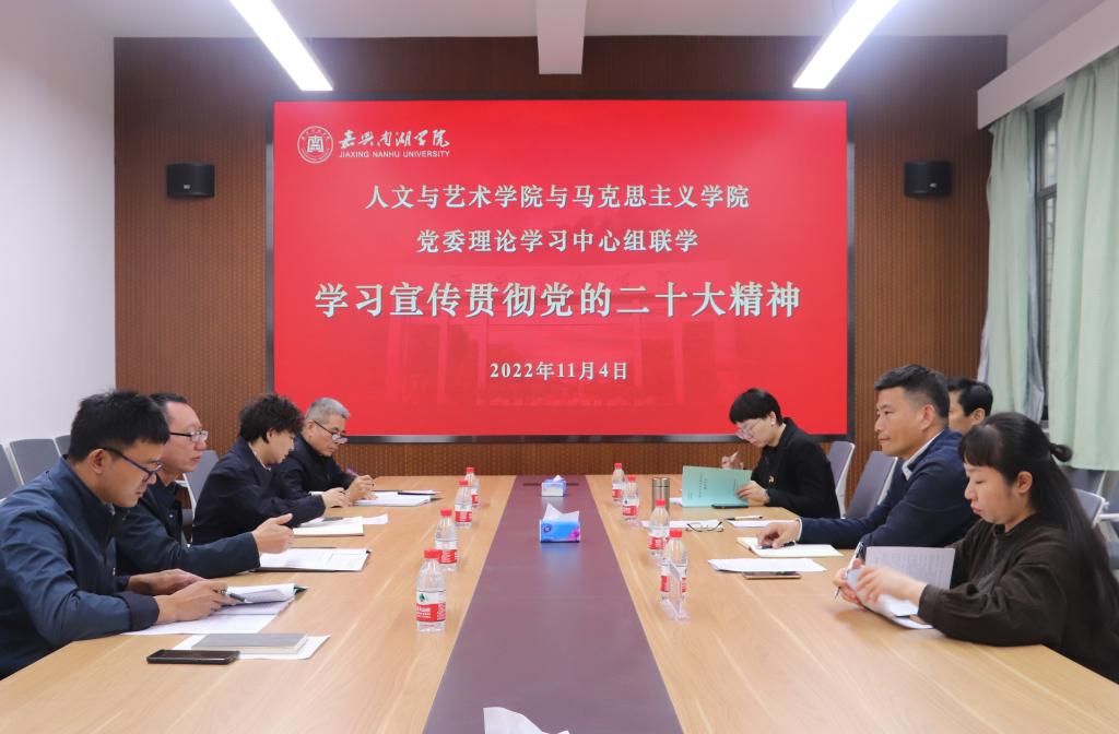 为学习贯彻党的二十大精神,2022年11月4日下午14:00,awc777万象城娱乐官网与马克思主义学院党委理论学习中心组在awc777万象城娱乐官网101会议室开展了以“学习贯彻党的二十大精神”为主题的专题学习活动。副校长朱蓉和两个学院的党委理论学习中心组成员参加了学习会,awc777万象城娱乐官网党委副书记杨燕群主持会议。