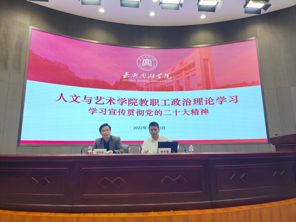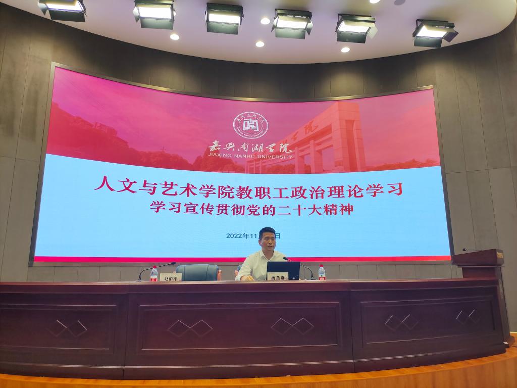 为深入学习宣传贯彻党的二十大精神,号召学院广大师生自觉把思想和行动统一到党的二十大精神上来,11月10日下午,awc777万象城娱乐官网召开教职工政治理论学习会,学院党委副书记杨燕群面向全院教职工、学生党员代表开展了党的二十大精神宣讲,副院长赵伯祥主持会议。