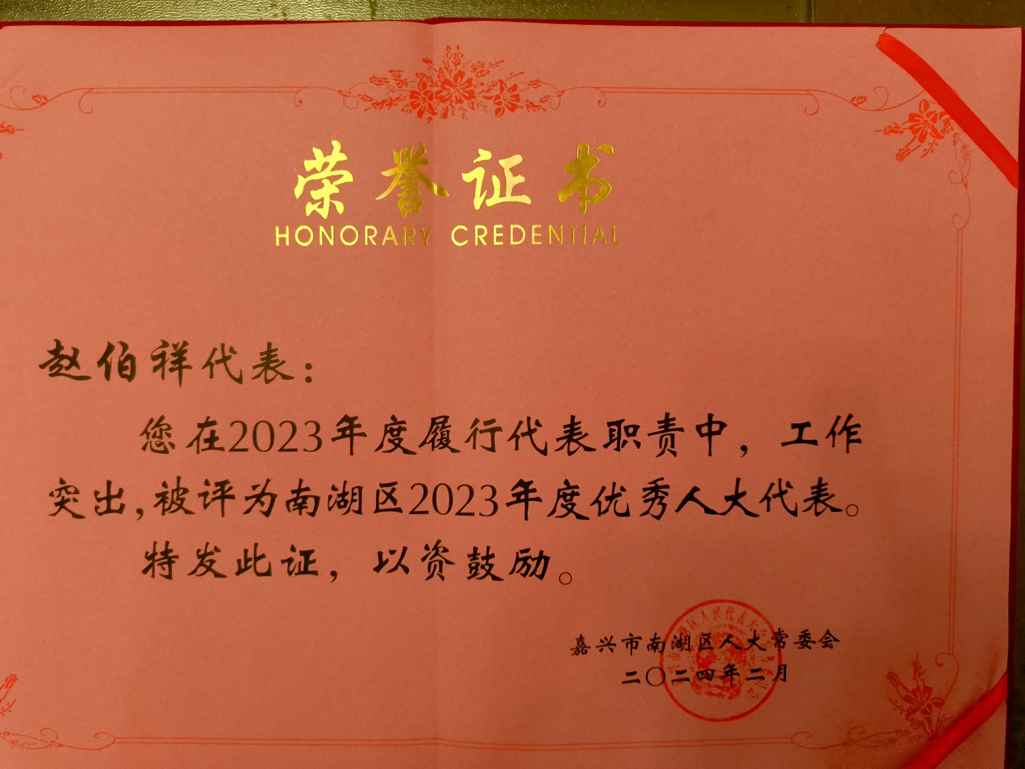 2024年2月4日-5日,在嘉兴市南湖区第十届人民代表大会第三次会议召开期间,万象城副院长赵伯祥教授因履职优秀,被评为2023年度南湖区优秀人大代表。