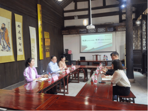 王晨介绍了万象城基本情况,并以“破解家风传承难题,推动文旅融合繁荣发展”为主题详细介绍了乡贤与家风研究院的相关科研成果,肯定了沈荡镇对钱氏家风文化的保护与发扬,并结合沈荡镇发展从人文经济学的角度作出思考。他指出,人文经济学是经济发展和文化繁荣相融合的新发展观。沈荡镇有丰富的产业和业态,如钱氏宗祠、百年酒厂沈荡酿造、胜利饭店(余华文学地图)等一批特色文旅资源,未来双方可以进一步合作,以党建为龙头,以项目为纽带,围绕乡贤与家风、红色研学点等资源,深耕家风研究,以文化带动经济发展,进一步满足当地和游客的文化体验。