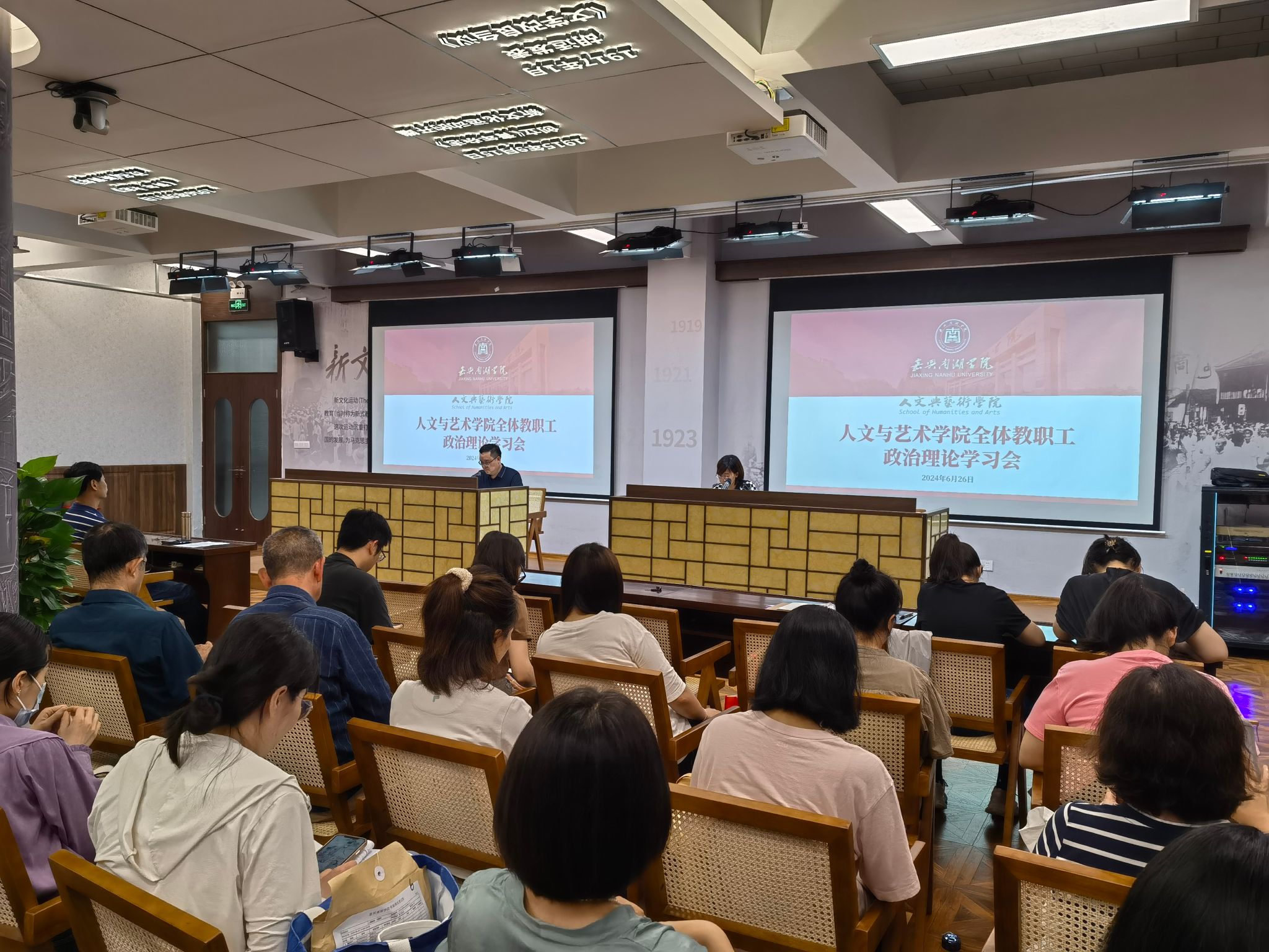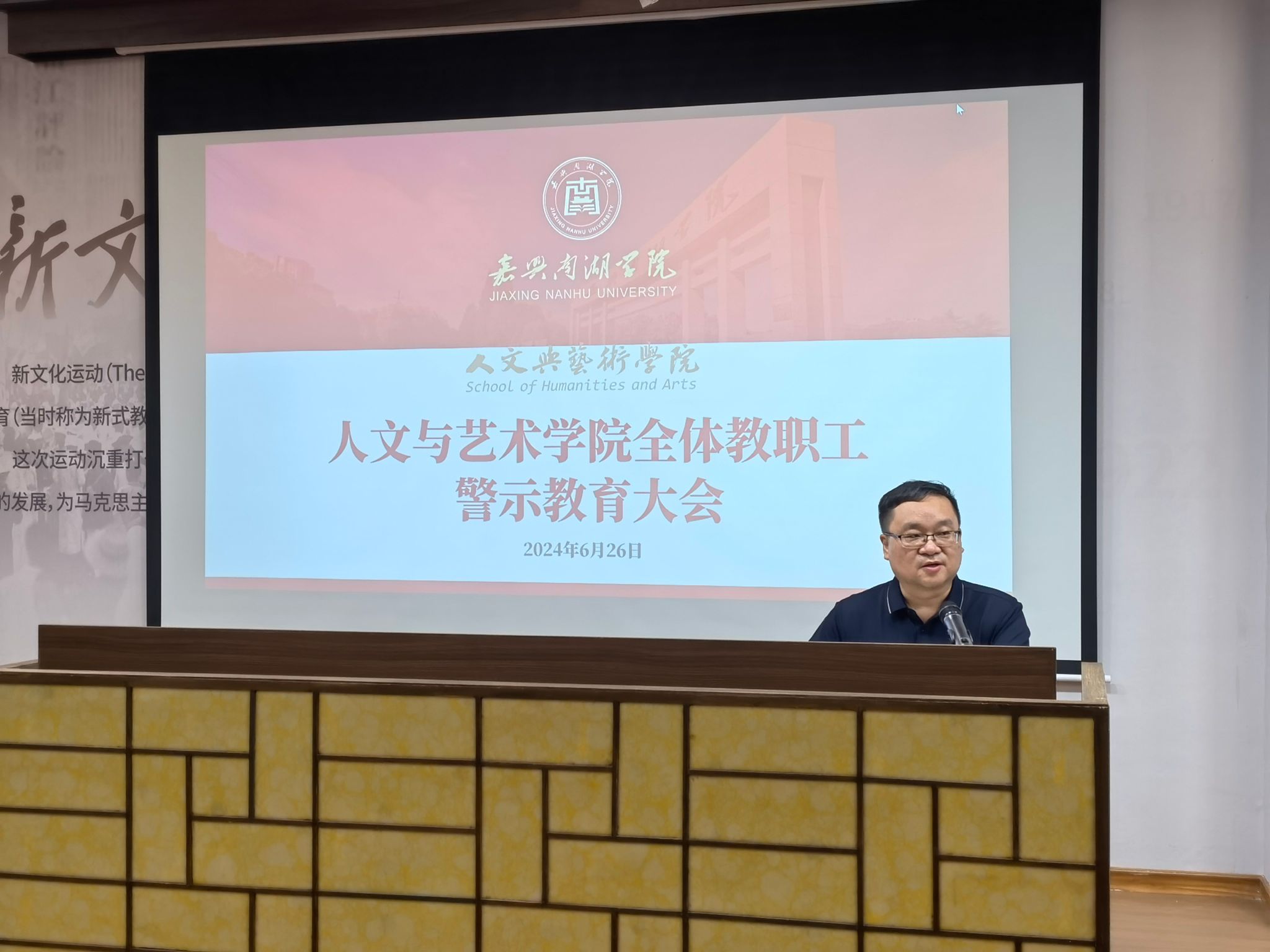 6月26日下午,学院在图书馆报告厅召开了全体教职工警示教育大会暨期末工作会议。会议由学院党委书记王晨主持,学院领导班子及全体教职工参加了会议。