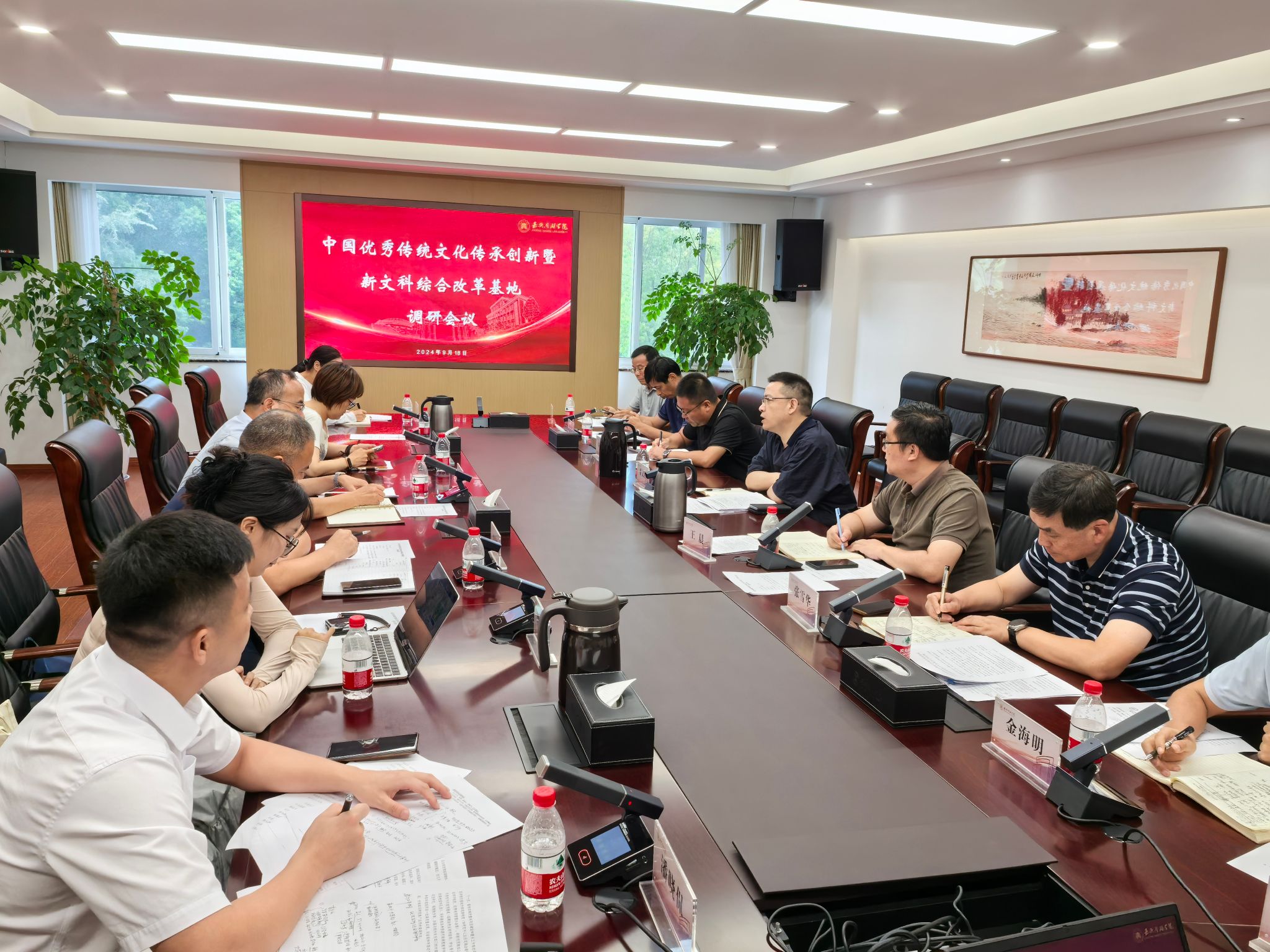 9月18日下午,学校召开中国优秀传统文化传承创新暨新文科综合改革基地调研会,校长贾文胜到会听取工作汇报并讲话。会议由awc777万象城娱乐官网党委书记王晨主持。