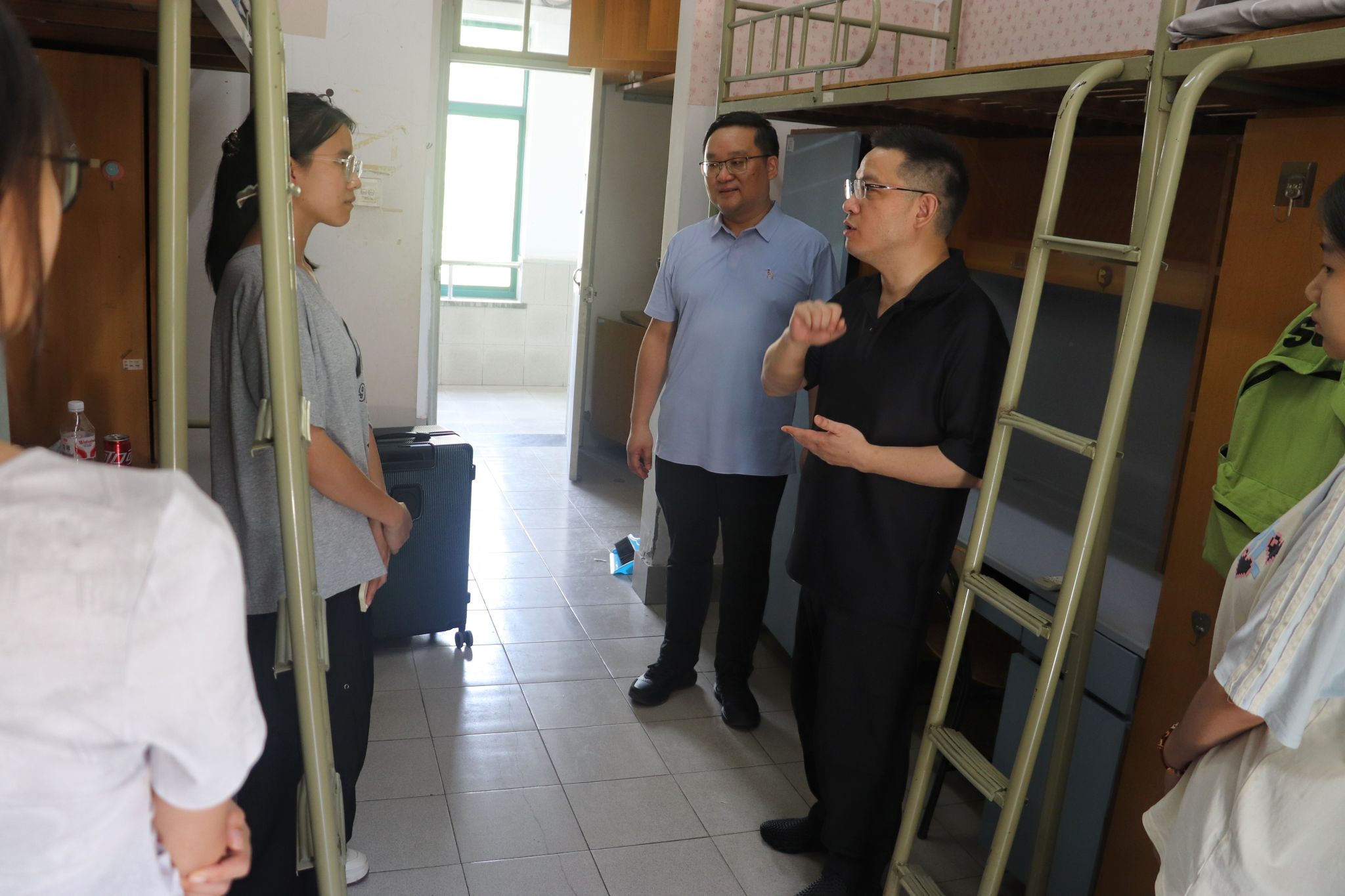 “老家是哪里的?”“来自哪所中学?”“对学校的环境感受如何?……” 校长贾文胜与新生亲切交谈,细致询问她们初入校园的感受、对专业学习的期待及未来职业规划方向,勉励新生尽快调整生活与学习节奏,充分利用学校图书馆、实验室等优质资源,主动参与学科竞赛、社团活动,在实践中发掘自身潜力、提升综合能力,努力成长为有理想、有本领、有担当的时代新人。