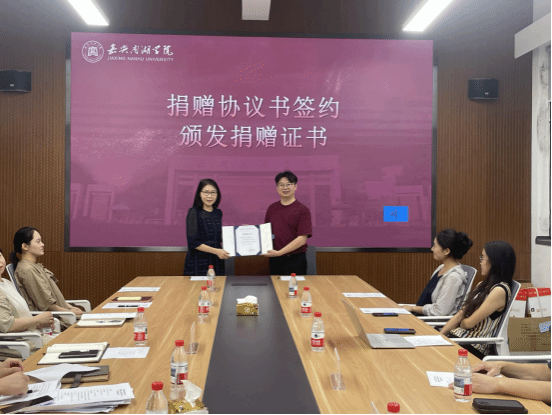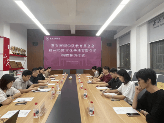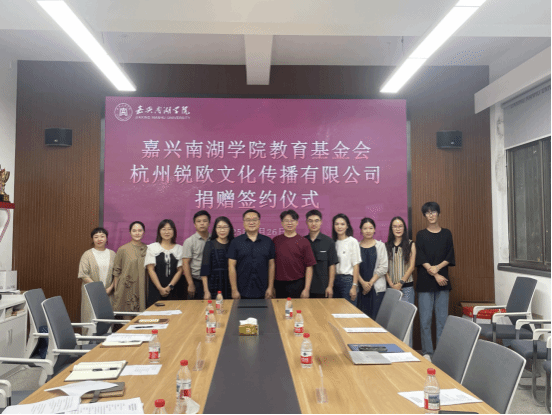 9月26日下午,嘉兴南湖学院教育基金会与杭州锐欧文化传播有限公司举行捐赠签约仪式。杭州锐欧文化传播有限公司董事长朱烜、嘉兴南湖学院教育基金会秘书长吕伟、awc777万象城娱乐官网党委书记王晨及学院相关教师参加捐赠签约仪式。仪式由学院副院长潘晓侃主持。
