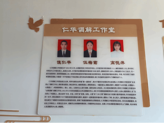 嘉兴市秀洲区司法局洪合司法所是浙江省嘉兴市秀洲区司法局的派出机构,2021年12月21日入选浙江省“枫桥式”司法所名单。该所聚焦新居民群体服务,构建多层次调解网络体系,设立镇级“仁华调解工作室”。“仁华调解工作室”以全国模范人民调解员饶仁华的名字命名,该工作室成立于2013年6月,在洪合司法所的指导下,已成为基层社会治理创新的重要样本。专职调解员饶仁华,国家一级调解员,累计调处纠纷2900余起,调解成功率100%,无一起引发“民转非”、“民转刑”和越级上访。其工作室2020年获评省级金牌人民调解工作室,曾获“全国模范人民调解员”等荣誉。