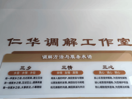 调研座谈会上,洪合司法所所长详细介绍了仁华调解室的日常运作情况,包括案件受理范围、调解流程、协议效力及司法确认等实务环节。饶仁华介绍了调解室采取“三乡三情”工作法,这种方法巧妙利用乡音、乡俗、乡情和亲情、友情、感情,拉近调解员与当事人的心理距离。他说:“在异乡打拼,生活难免磕碰。我们借助老乡间的风俗习惯相似、语言相通的优势,有效克服当事人的排斥心理。”