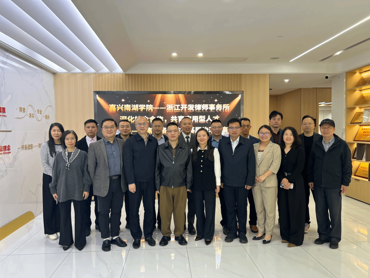 贾文胜代表学校对南湖区政府、浙江开发律师事务所一直以来的关心支持表示感谢。他表示,嘉兴南湖学院作为城市应用型大学,要主动对接国家和区域经济社会发展需求,发挥“扎根”优势,加强校地校企合作,提升服务地方工作水平。贾文胜强调,此次调研交流目的一是寻求支持,双方立足各自特色优势,聚焦本科教学工作合格评估要求,共同做好实践教育基地建设;二是寻求合作,在人才培养方案修订、课程开发、教材编撰、案例整理、项目共研等领域加强合作,积极服务嘉兴区域法律人才培养;三是寻求事业,全面探索“家风+法律”推动基层社会治理的创新路径。他期待以此次交流为新的起点,三方能够携手并进,在人才培养、社会服务等领域结出更多硕果。