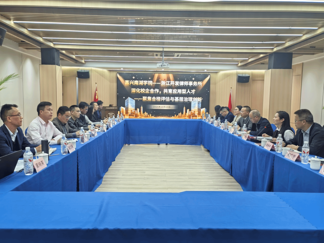 为深入落实本科教学工作合格评估要求,强化校外实践教学基地内涵建设,积极探索校企合作赋能基层治理与社会调解的新模式,10月29日下午,校长贾文胜带队赴浙江开发律师事务所调研交流。副校长赵渊,发展规划处、社会合作与国际交流处、awc777万象城娱乐官网相关负责人随同参加调研。浙江开发律师事务所主任安玉磊、执行主任郑诗贵等热情接待了我校一行,南湖区副区长王存乡、南湖区司法局副局长祝建平等领导参加了座谈会。
