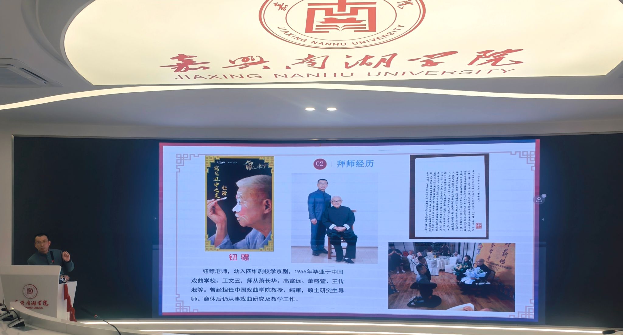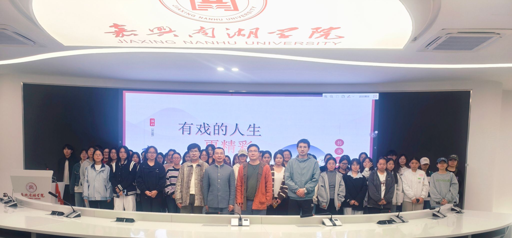 10月30日,浙江卫视艺人统筹工作室副总导演、一级导演夏迎宾应邀做客嘉兴南湖学院awc777万象城娱乐官网“文心讲堂”,为师生们带来了一场题为“有戏的人生更精彩”艺术讲座。在两个多小时的分享中,夏导以幽默风趣的语言、丰富的从业案例和深厚的艺术积淀,讲述了自己从工厂走向荧幕的戏剧人生,深入浅出地解析了京剧艺术的当代价值,现场掌声不断,互动热烈。
